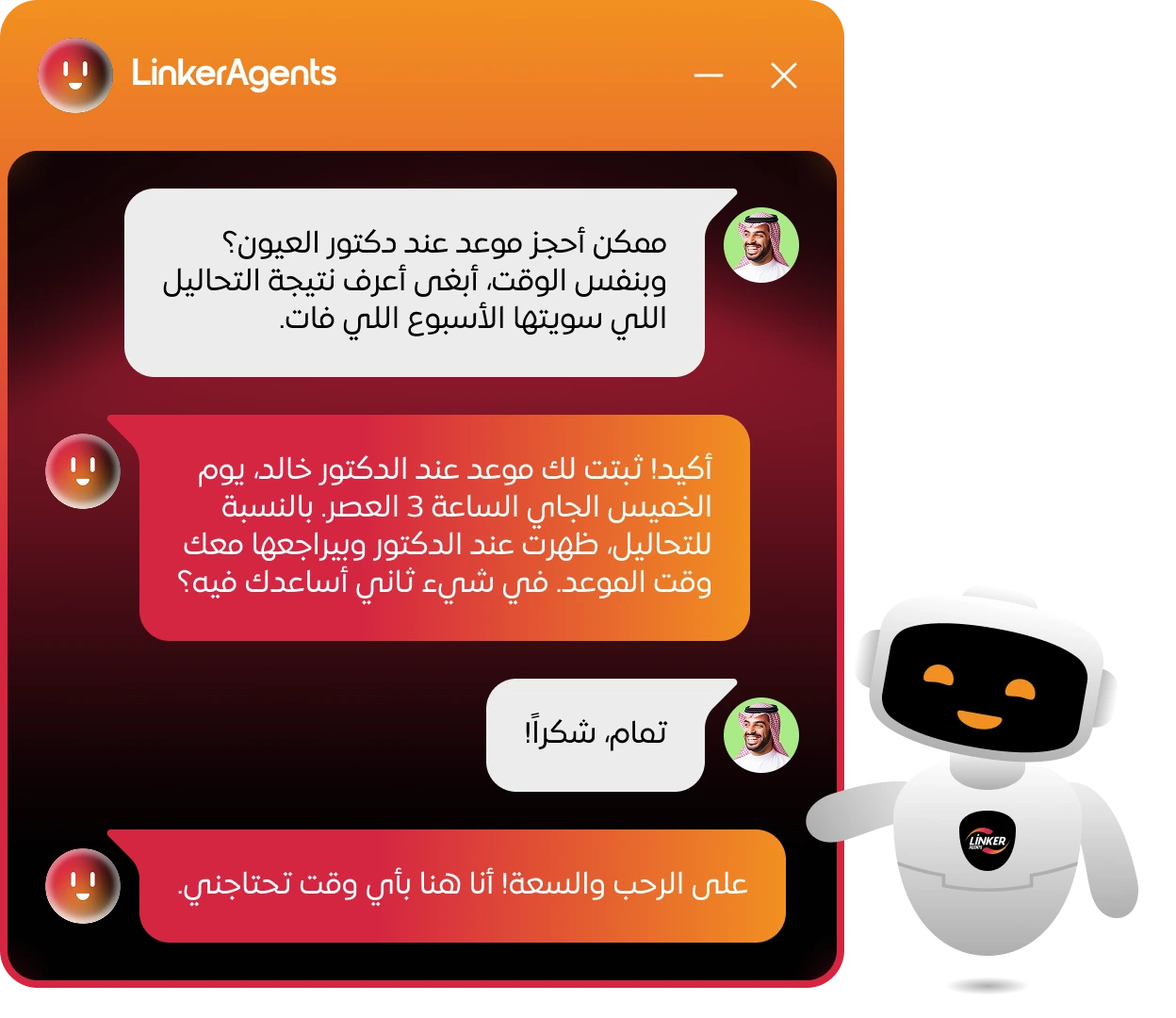 مع لنكر، كل عميل يحصل على تجربة متخصصة، دقيقة، ومتسقة — أيًا كان الوقت، أيًا كان العدد، وأيًا كانت التفاصيل.